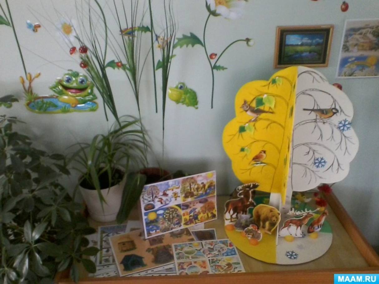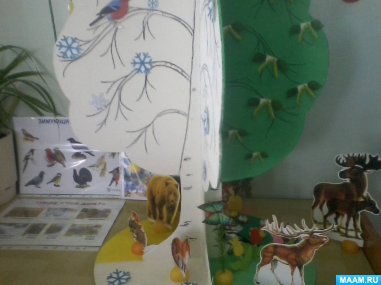 ![]() Мне очень понравились представленные на MAAM.RU макеты "Деревьев"Времена года".И мне захотелось сделать такое дерево для своих ребят. Вначале нарисовала дерево на двух листах А4, затем перевела его на ДВП, распилили вдвоем с мужем лобзиком, сделали пазы, чтобы собрать дерево. Затем гуашью украсила по временам года каждую сторону дерева. Распечатала картинки с изображением животных, птиц, листочков по временам года, снежинки; подобрала маленьких птиц на веточках, бабочек, грибочки, цветы. Вместе с детьми на двухсторонний скотч наклеили листочки по временам года, снежинки на зимнюю сторону, добавили птиц, и животных. Затем, разместив в уголке природы, добавила дополнительный материал:"Чей дом?", "Времена года", "Подбери плод к дереву", "Зимующие и перелетные птицы", "Лесные животные",. Дидактическое пособие удобно в применении и на занятиях по ознакомлению с окружающим миром, по развитию речи, на математике, изобразительной деятельности, и вне занятий дети постоянно заняты в уголке природы. ![]() ![]() ![]() ![]() ![]() ![]() ![]() ![]() ![]()